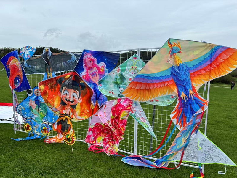 特色风筝集市:哪吒、孙悟空、小燕子等超多款童年梦幻风筝,深受游客喜爱,纷纷挑选心仪的风筝放飞。