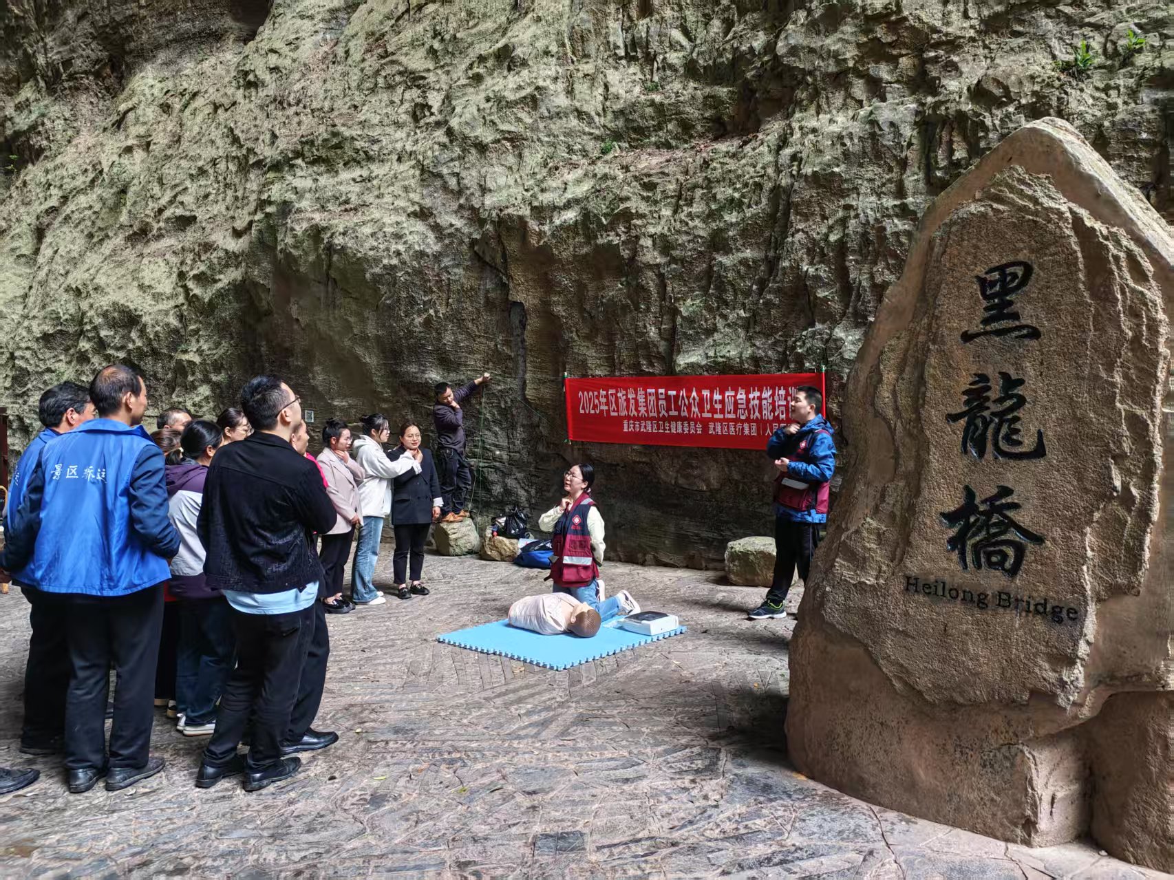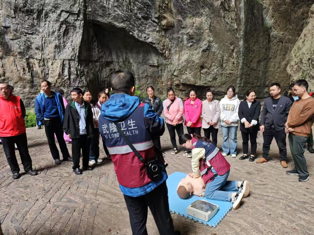 山水有灵,安全随行。为切实保障游客生命健康安全,全面提升景区应急救护能力,4月29日,武隆景区特别邀请武隆区人民医院急救专家团队,在仙女山、天生三桥、芙蓉洞等景区实地开展AED(自动体外除颤器)应急救援培训。景区百余名一线员工积极参与,以理论结合实操的形式,切实掌握急救技能,为游客安全游览再添一道坚实防线。