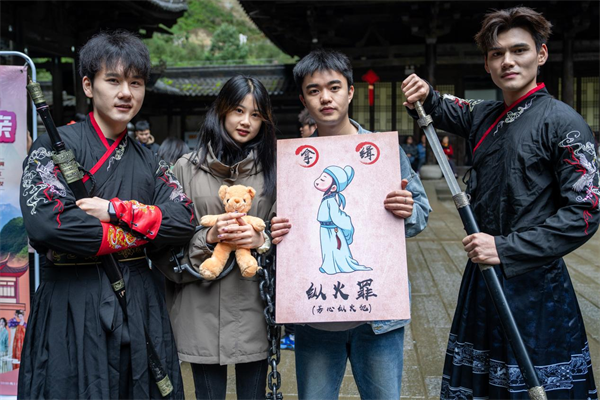 欢乐竞技场等你来战。天生三桥脑洞大开,上演“次元破壁”!黄金甲侍卫与变形金刚快闪对战,快来打卡武隆“抽象”名场面!芙蓉洞长廊则变身“陀螺战场”!选择印有“武隆”“芙蓉洞”的专属陀螺现场对撞,重拾童年欢乐;天生三桥电梯、仙女山小火车、芙蓉江缆车排队处,热门IP现身互动!石头剪刀布、划拳、你比我猜……让等待变成欢乐时光!