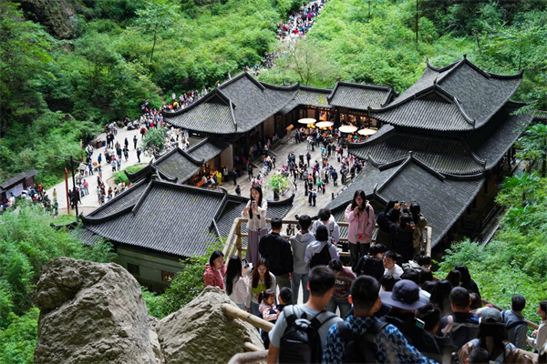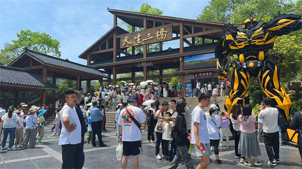 五一假期热度持续攀升!5月2日,武隆这片山水秘境彻底“燃”起来了,各景区人气值全线“爆表”!一早,景区停车场就被车流“包围”;天生三桥黄金甲侍卫、侠女、侠客陪游,峡谷里笑声震天;仙女山成了欢乐海洋,风筝与歌声齐飞;《印象武隆》更是创下连开三场、场场秒的火爆纪录!据统计,武隆景区单日接待量创历史新高,展现出强劲的文旅消费活力。