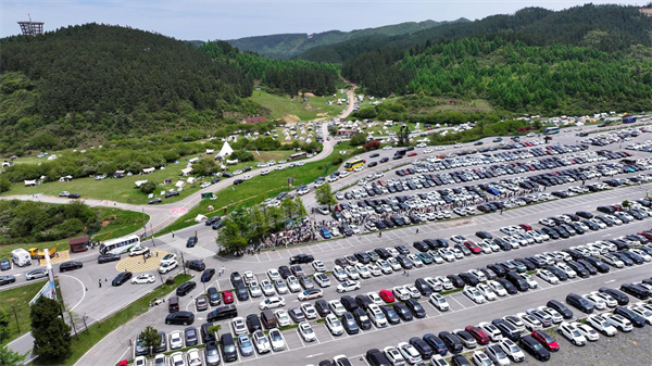 为应对车辆增多的情况,景区设置多个临时停车场,提供充足车位,并通过合理规划停车区域,尽管游客众多,车流量激增,但车辆均有序进入停车场,整齐停放,井然有序,形成一道和谐美丽的风景线。