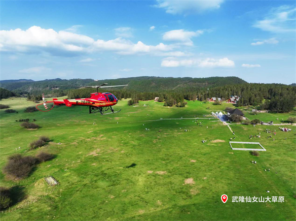 万亩草场正值青绿巅峰,骑马、放风筝、露营、打卡网红小火车,躺在草坪看云卷云舒,直升机低空掠过的轰鸣声里,藏着重庆人的瑞士平替浪漫。