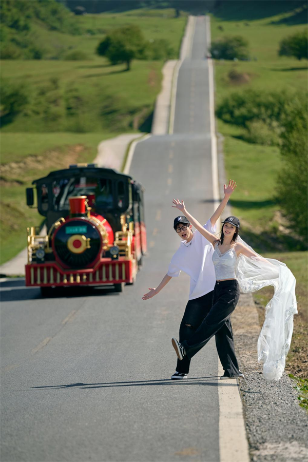 最美公路是情侣照的梦幻取景地,远处牛马闲步,小火车穿梭,分分钟拍出文艺大片。