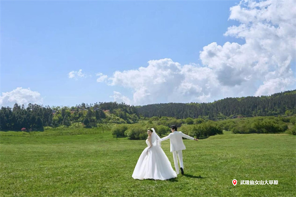 走进“东方瑞士”仙女山,在10万亩草原草原上奔跑嬉戏,或是静静躺在草地上仰望蓝天白云,随便一拍都是森系婚纱照级别的大片!