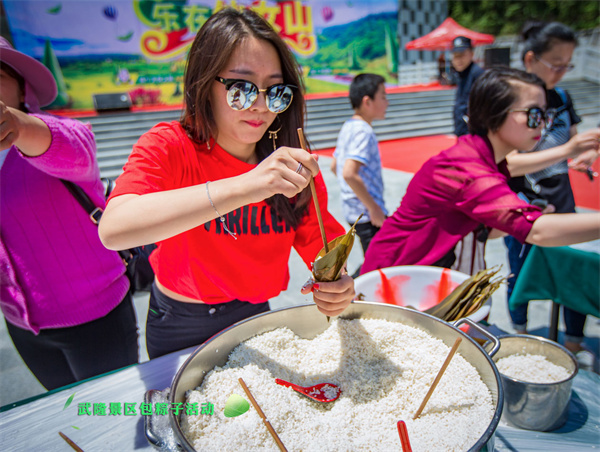 端午节怎么少了吃粽子、包粽子。今年武隆景区将开展“粽夏嘉年华”端午主题趣味民俗活动,游客可免费参与粽王争霸赛,与高手比拼包粽手速,创意造型粽还能C位出道;挑战粽横四海・足梦前行蒙眼踏步,在游船摇晃间考验平衡感,解锁“稳如泰山”成就;偶遇趣味问答,答对即可抱走端午限定好礼!更有露天诗会、趣味问答等活动,赢取端午限定奖品,让旅程更添趣味。