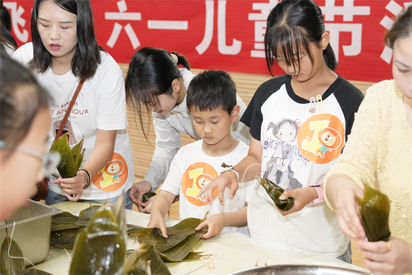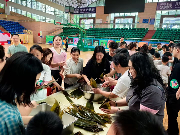 随后的“亲子包粽子比赛”中。家长与孩子们默契配合,卷粽叶、填糯米、系棉线,形态各异的粽子承载着欢声笑语陆续诞生。不仅展现了亲子间的默契配合,更让孩子们在实践中深刻体会到了端午文化的独特魅力。