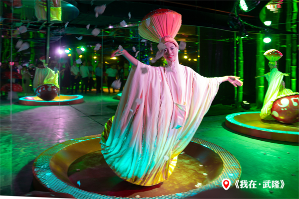 傍晚:观看《我在·武隆》行浸式演出,它以武隆的自然风光为背景,当脚步随剧情穿行于喀斯特秘境,每一帧呼吸都交织着视觉震撼与精神共鸣——你不再是旁观者,而是化身山水画中人。