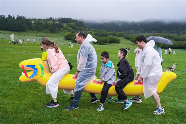 绿毯般的仙女山草原上音符跳跃,编织五彩丝线的小手穿梭飞舞,剪纸窗花映着笑脸。最火爆的是“粽王争霸赛”,粽叶翻飞,糯米飘香,大人小孩齐上阵,巧手包裹心意,优胜者赢取香囊、萌趣玩偶与满载祝福的香粽!