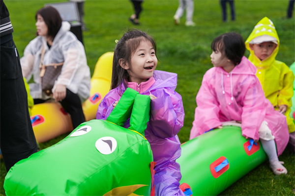 旁边的“旱地龙舟赛”更是呐喊震天,五人为伍,驾驭充气龙舟在绿野上“破浪”竞速!齐心协力的队伍冲过终点,不仅抱回甜蜜粽子礼,精巧的风车、小风筝更让孩子们欢呼雀跃!