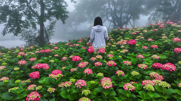 浅紫的“无尽夏”在风里晃悠,奶白的“雪球”堆成云朵,还有渐变粉蓝的品种藏在小径拐角,随便往花海里一站,阳光透过花瓣洒在脸上,分分钟拍出《小森林》同款日系感;薄雾时分与花同框,唯美梦幻大片即刻生成!偷偷说,穿浅色连衣裙+草编包,出片率100%,闺蜜拍、情侣拍、单人氛围感大片,这里全给你拿捏住。