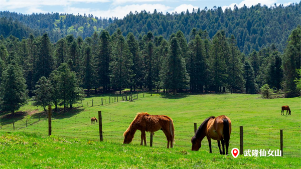 平均气温 21℃的仙女山,是绝佳避暑地。广袤的草原上,牛羊悠然,蓝天白云触手可及。和好友一起肆意奔跑,在风的吟唱中丈量青春的长度。