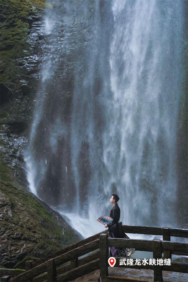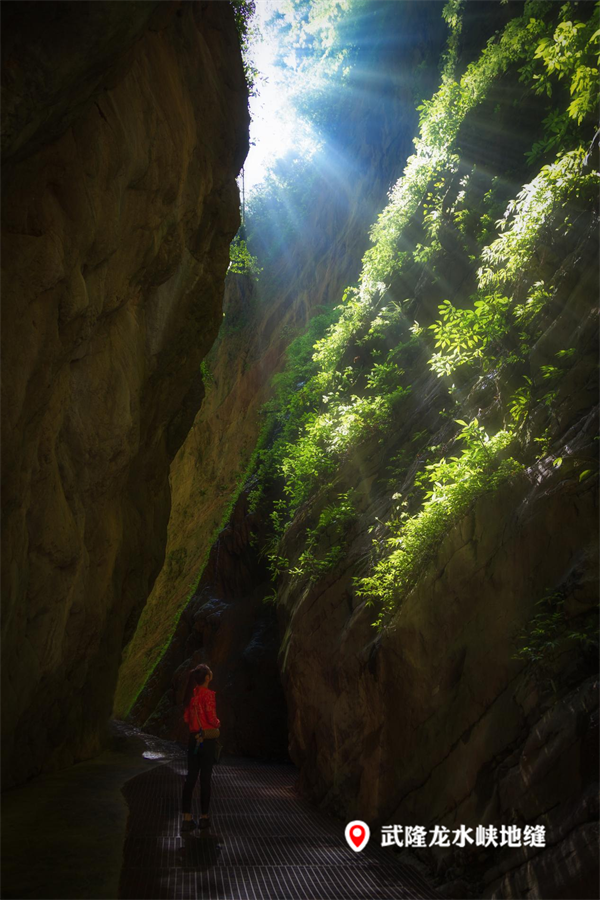 走进龙水峡地缝,就仿佛开启了一场地心探险之旅。阳光透过缝隙洒在身上时,会让你感受到一种全新的力量,带着对未来的探索之心,勇敢前行。并且不用去百丈漈,在银河飞瀑下就能实现生命力美照。