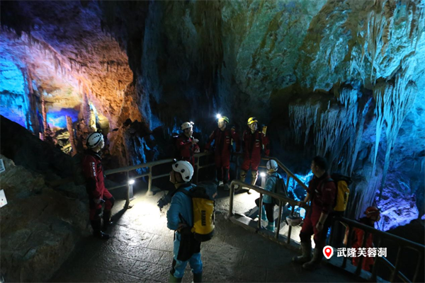 和朋友一起在芙蓉洞中探索,形态各异的石钟乳在灯光的映照下如梦如幻。每一处新的发现都能引发一阵惊喜的欢呼,那些奇妙的景观也将成为你们青春记忆中最独特的片段。