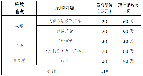 重庆市武隆区景区将在成都、长沙、张家界等地进行线下媒体广告采购,在核心商圈、交通口岸等地进行投放,现面向社会公开选取具有服务资质的服务商,诚挚邀请符合本公告设置条件的服务商报名参加。