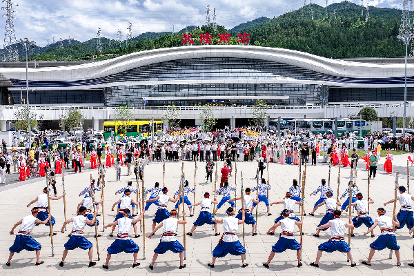 6月27日,渝厦高铁重庆东至黔江段正式开通运营,在这具有里程碑意义的时刻,首发驶出的正是意义非凡的武隆澳网官方网站主题专列——“自然的遗产 世界的武隆”G8697次列车。承载着无数期待,从重庆东站呼啸驶出,为这场历史性的开通增添了一抹别样的色彩。