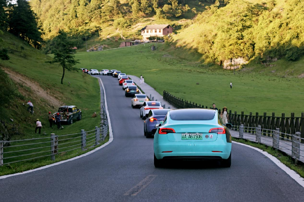 首日,特斯拉车队驶入“东方瑞士”仙女山国家森林公园,海拔1900米的“南国第一牧原”上,流线型车身与碧绿草原共绘赛博仙境。女性车主们身着国风服饰,以科技座驾为背景,定格“未来感”与“自然野趣”的绝美碰撞。