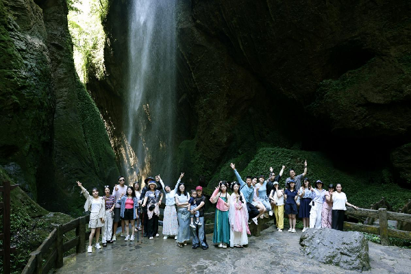 次日,穿越世界自然遗产地龙水峡地缝——3公里长的峡谷内,瀑布从百米高空倾泻而下,参与者以峡谷为天然影棚,拍摄出兼具力量感与神秘感的“仙系大片”。