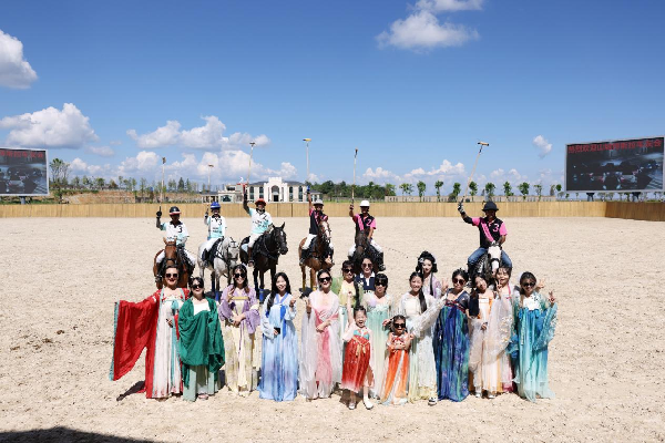 绿茵场上,骑手们策马扬鞭,球杆划破长空,力量与技巧的碰撞迸发出热血沸腾的张力;在马球的观赛场上,游客们一袭汉服翩然落座。一动一静,勾勒出科技与自然、速度与诗意的双重意境。