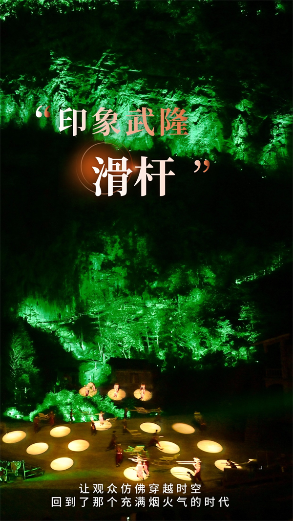 《印象武隆》的舞台有多大?天地为幕,山川作台! 整整70分钟,100多位特色演员倾情献演,把巴渝大地上最动人的生命之歌——“川江号子”的精髓,活灵活现地带到你眼前。它巧妙地将纤夫们与自然搏斗的磅礴历史画卷,铺展在世界自然遗产的宏大背景中。