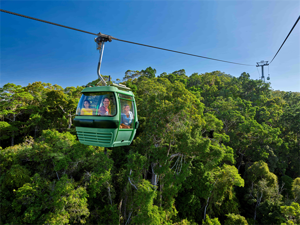 在地球另一端的澳大利亚昆士兰库兰达镇,世界上最古老的热带雨林静静延展。搭乘凯恩斯 Skyrail,便可开启一段「发现远古雨林」的独特旅程。三十年来,Skyrail始终秉持绿色环保与可持续发展理念,将热带雨林生态与缆车观光巧妙结合,打造出受世界游客心向往之的世界级景区。建设初期,为最大限度降低对树冠层造成的气流干扰,施工团队采用直升机悬停技术,在指定高度精准运输建设材料;运营过程中,则广泛运用太阳能配合驱动缆车,全面回收油燃料及溶剂。每一项举措,无不彰显Skyrail对环境保护与自然遗产守护的坚定承诺。