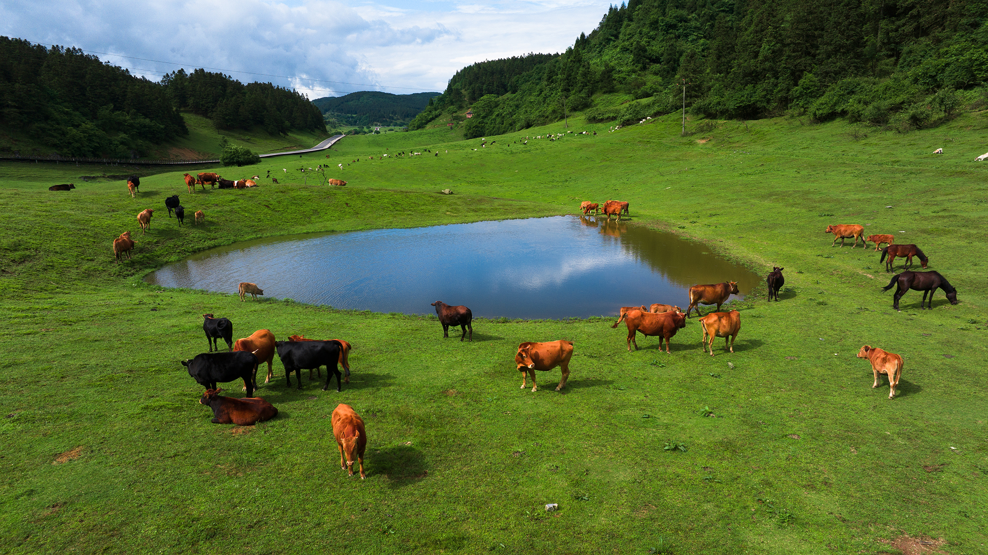 海拔2033米,拥有33万亩森林与10万亩天然草场。秋日的仙女山,草地渐染微黄,白云低得仿佛触手可及。