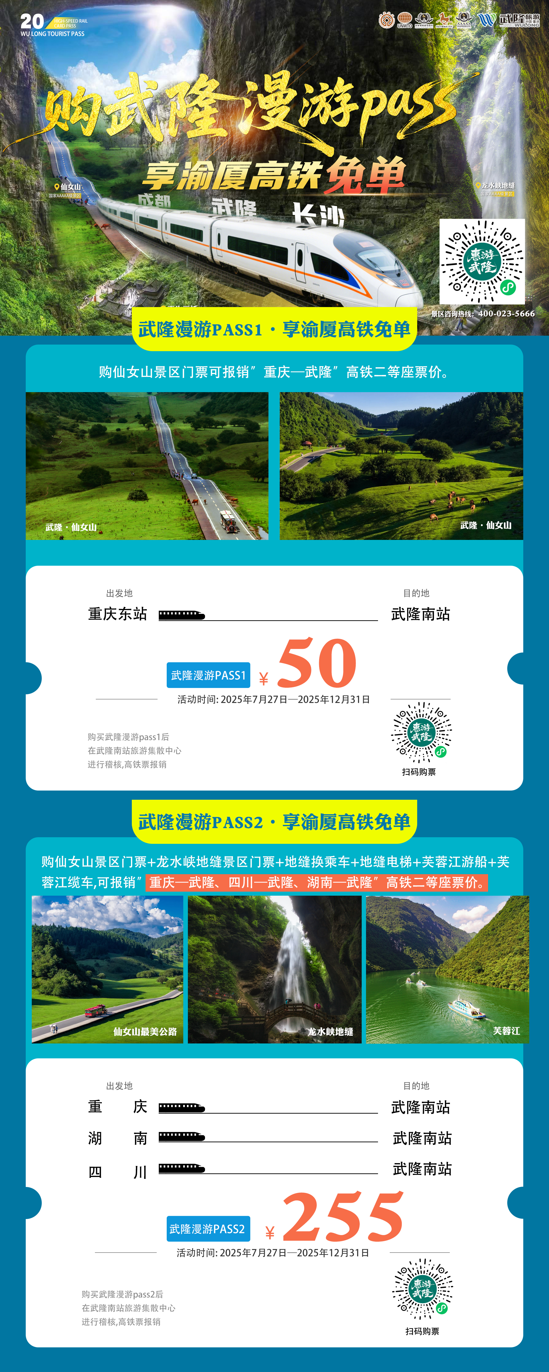 1:天生三桥 + 龙水峡地缝 → 晚上看《印象武隆》