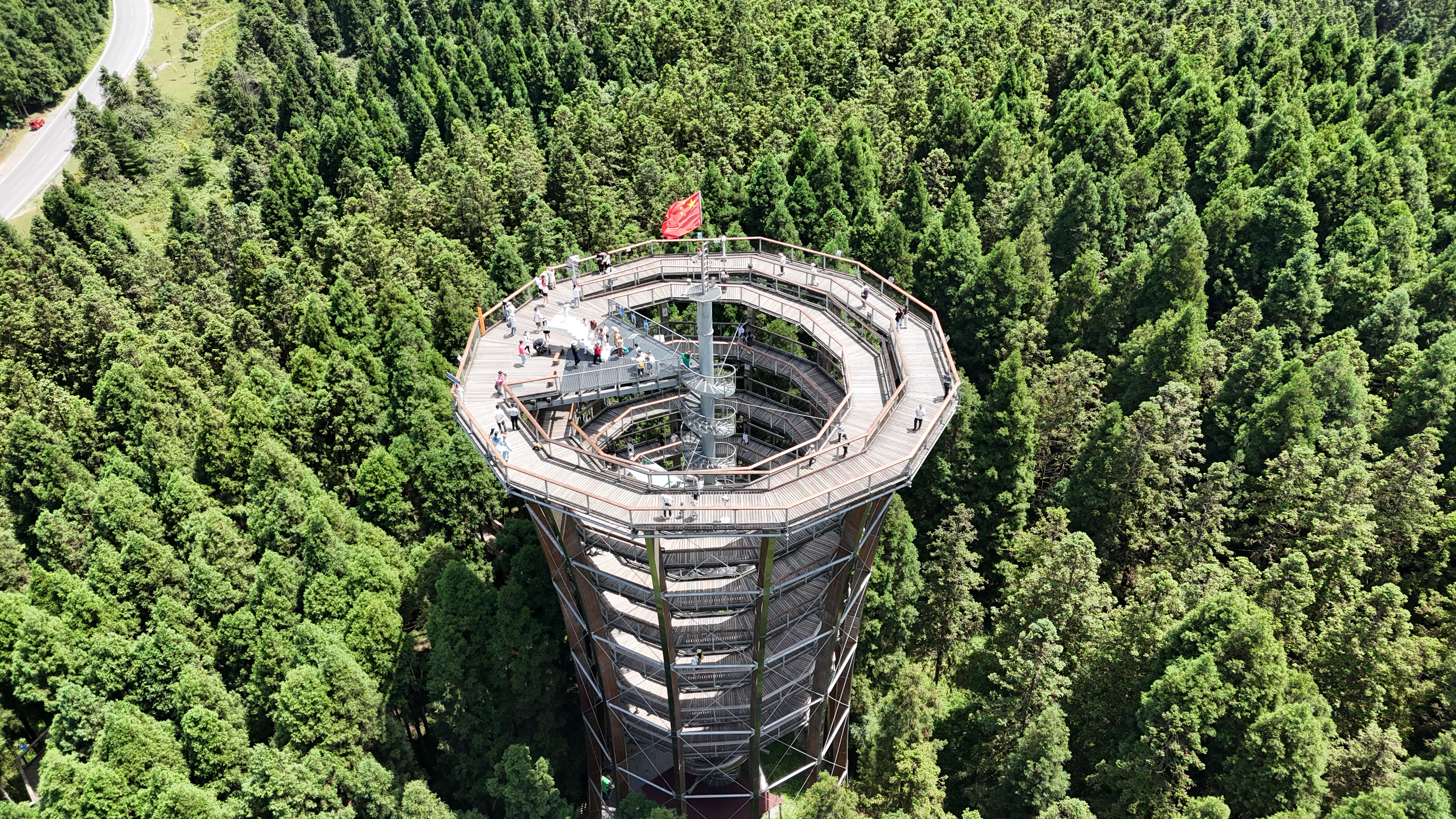 3.树顶漫步:一条空中无障碍步道 + 一座高空玻璃观景塔,让你从“树梢”到“云端”,多维度欣赏森林美景。