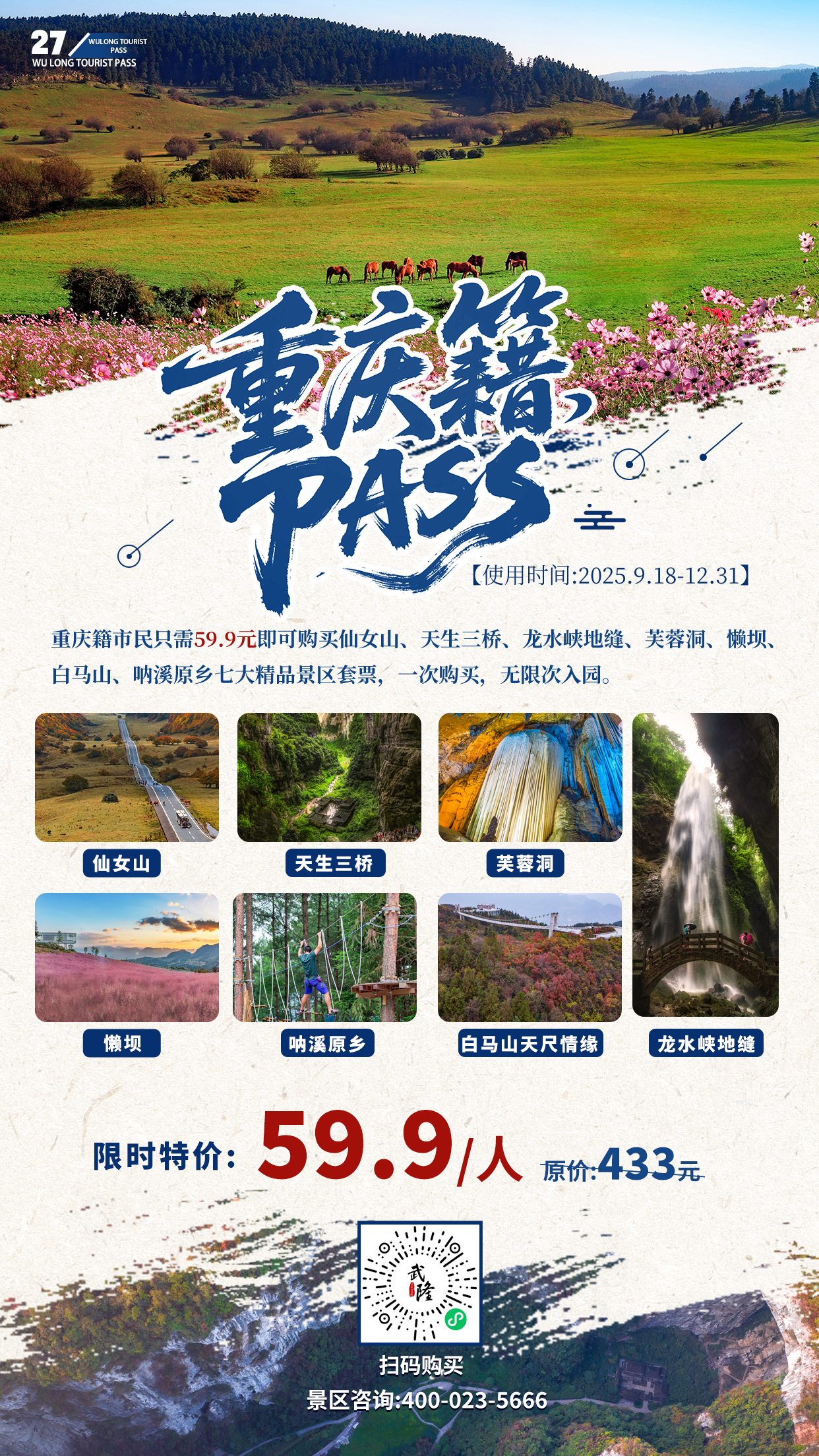 教师专属PASS福利倒计时7天,教师免费福利不等人,重庆人59.9元全年卡更能承包下半年的快乐!赶紧@你的老师,约上家人朋友,一起去武隆的山水间,赴一场错过难再有的超值之约!