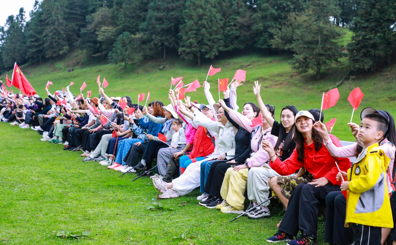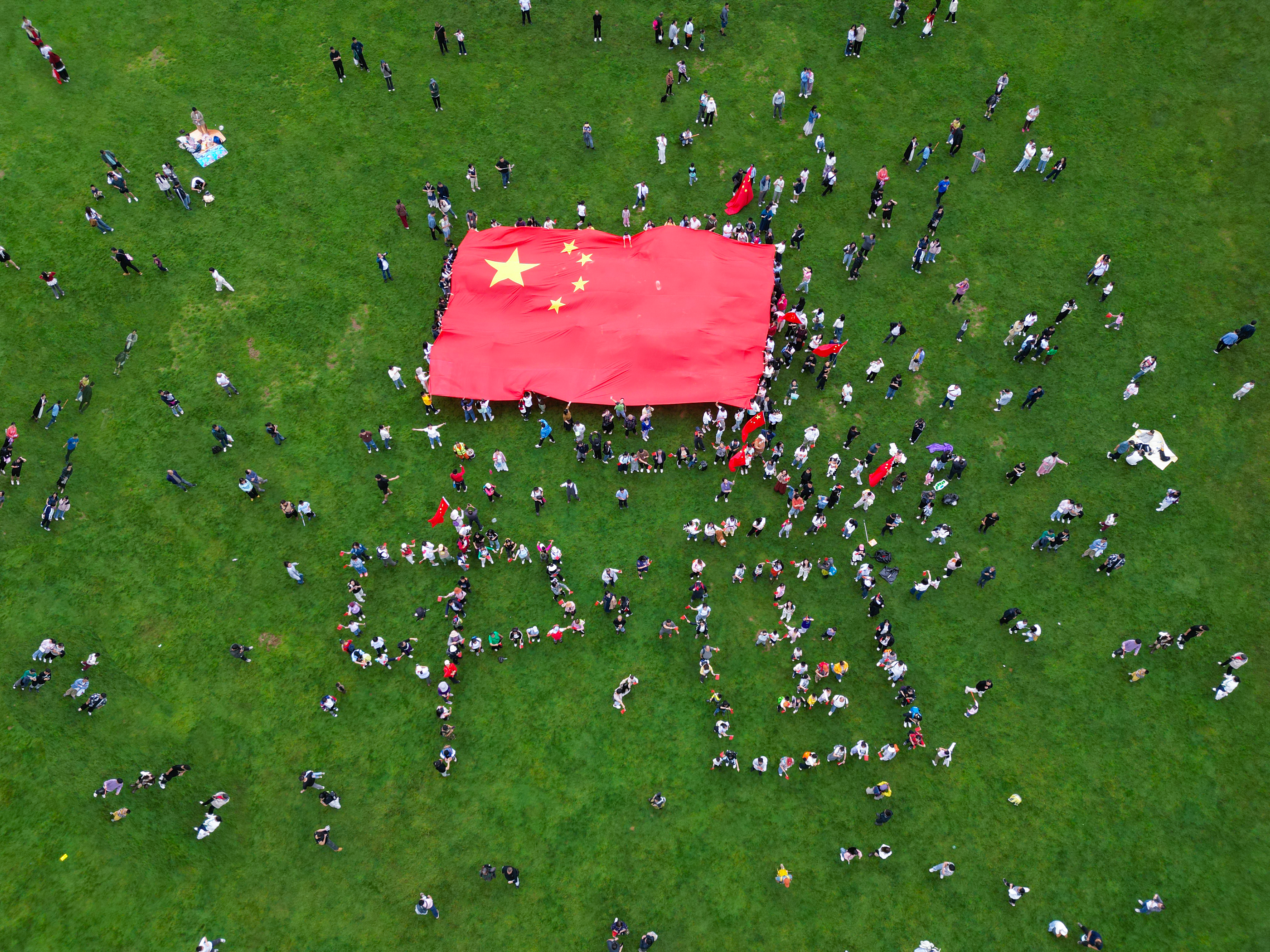 特别是与巨幅国旗合影活动尤其吸睛,在现场不管男女老少,都纷纷加入其中,此起彼伏跃动的中国红,形成一片亮丽的“红色海洋”,场面壮观喜庆、氛围热烈。