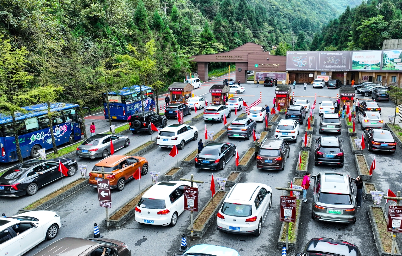 智慧运营与现场保障并重,通过智慧引流系统实时调控客流,实现“人车虽多而秩序井然”的良好效果。国庆期间,武隆各大景区人气旺盛却秩序井然,安全严密的接待措施与优质暖心的服务赢得游客一致好评。停车场内车辆整齐排列的“方阵”,成为景区一道亮丽风景,舒适的游览环境实力“圈粉”无数。