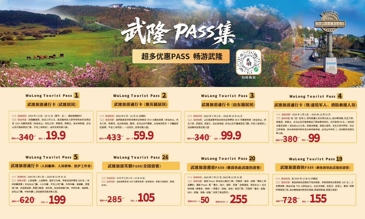 多部门联动构建起全方位服务体系,推出多种优惠Pass产品。重庆籍游客可享59.9元无限次畅游七大景区,高铁旅客、现退役军人等群体享有专属福利,“芙蓉Pass”等普惠政策覆盖广泛。