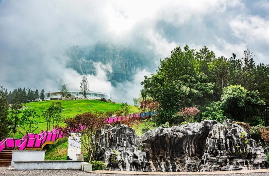 1.5 圆石火塘从表面上看来,就是一个堆着两座假山的凹地。其实不然,你万万想不到,在冬天这里将会燃起熊熊烈火。 1.6 祈福栈道建于懒坝美术馆旁,依据地势层层而上,五色阶梯,走在其中沉浸在两旁的花海中,赏心悦目。 1.7 坐落于天空艺术景区中心高地上,内有两层展厅,收藏来自世界各地的当代艺术藏品。走在其中,透过玻璃,室外的绿意在眼前徐徐展开。 1.8 在这里,永远不需要点餐便能够自动生成前菜、主菜、甜点,人们可在山野中享受品尝艺术家带来的艺术性质的趣味法餐。 1.9 国内唯一一个可以为心跳“拍张照”的心跳博物馆。人们可以带走自己或者自己心爱的人的心跳声,作为永久纪念,当你思念谁了,也可以去听听他的心跳。 1.10 冒着粉色的小泡泡开遍了懒坝心跳博物馆的周边。没滤镜,却美得像仙境。秋风吹过,一片粉红,犹如云雾,绝对不失为拍照打卡圣地。 1.11 分别藏在森林和岩石隐蔽处的情侣巨人,人们需要到现场,根据艺术家的线索找到恋爱的两个人,经历一番森林探险后,才可能发现这两个巨人的踪影,快来寻找这条“爱的小径”吧~ 1.12 度假区大地艺术花园内有大量以艺术姿态打造的现代园林景观,其中游光隧道便是其中重磅的打卡景观之一,让游客们走进其中如穿越一般,感受艺术美感。