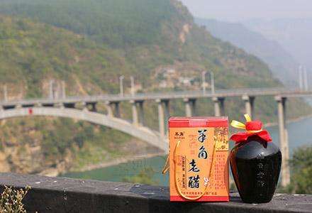 “羊角”牌老醋已有两百多年的历史,羊角老醋厂位于武隆县羊角镇,具有酸甜适度、色味鲜美浓郁、久存不腐、不生花变质等特点,有开胃健脾,对高血压和低酸性胃病有辅助治疗作用,同时富含人体必需的氨基酸、乳酸、铁、钙等多种营养物质和铜、锰等抗癌微量元素,“素有调味佳品,醋疗药品,保健珍品”之美称。