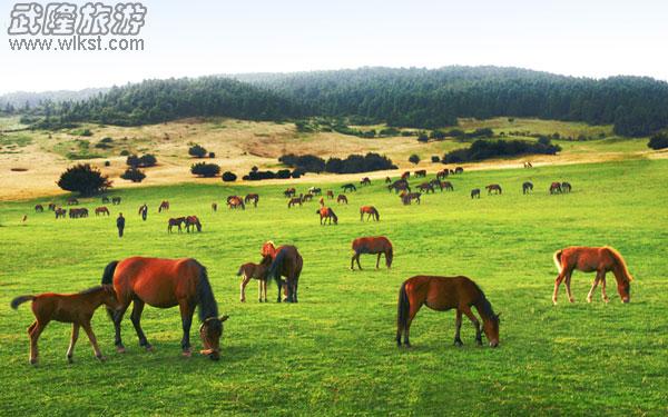 仙女山山上为高原草坪,偶有浅丘。平均海拔1800多米,高峰2033米。景区面积400余平方千米。其草场面积近万公顷,凡春夏,但见蓝天白云,草绿如茵,鸟语花香,牛羊 成群,一派生机,有高山牧场之誉。